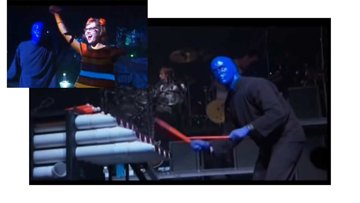 Жизнь игра, и с каждым годом в этом убеждаюсь всё больше. А музыка.. ну это саунд трек к нашему пребыванию в действительности. Донна Саммер, Оззи Осборн... -сейчас классика, а тогда они были - МОДОЙ! И слова из песни Queen, теперь крылатая фраза. -Шоу будет продолжаться. Несомненно. Вот и сегодня ребята из американского коллектива Blue Man Group зажгут музыкальный огонь. Конечно я выставил в заголовок имя "французских инопланетян", ибо знаю что в нашей стране Рокетс ценится на вес золота. И значит читатели наверняка воспылают желанием кликнуть по статье- ну что там ещё за синие?!...Такой знаете вежливый кликбейт))) А прослушав песню, перед вами затанцует Донна Саммер, и Оззи появится со своей невменяемой походкой, -если у Майкла Джексона скольжение по сцене отождествлялась с ходьбой по луне, то у Оззи его поступь- как блуждание по лесу, после литра огненного напитка. Blue Man Group существуют с 1987 года, американцы их любят, судя по реакции в клипе, да и есть за что любит