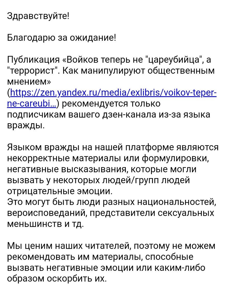 К моему удивлению и сожалению, предыдущую статью «не пускают в эфир». Вот ответ от поддержки Дзен: