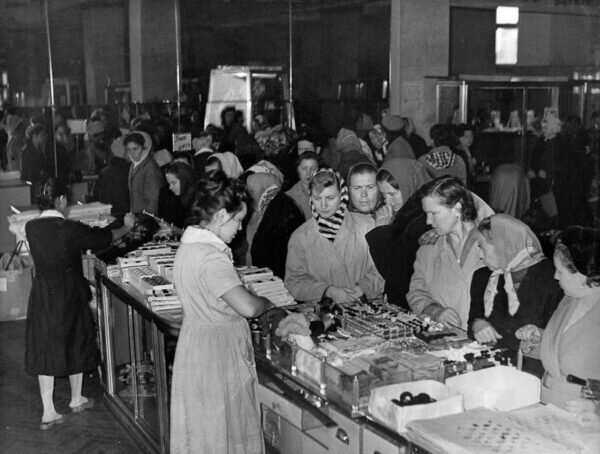 Экономика после войны стала плановой - каждое министерство получало задание на производство товаров, от него шли разнарядки по регионам, областям, а оттуда - к конкретным предприятиям, которые должны были выполнить, а желательно, и перевыполнить план. И часто так случалось, что одних товаров был переизбыток, а других острый дефицит. Вот и спихивали залежавшееся "добро", чтобы не пропадало.