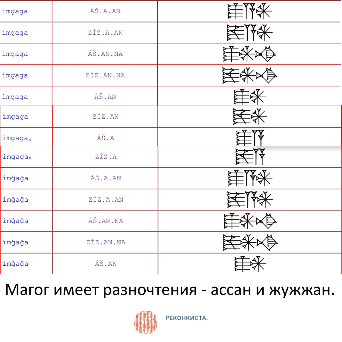 Начнем с магогов, которые позже станут называться уже моголами. Как видим, данное слово имеет кучу вариантов кодирования и имеет еще два варианта разночтения - ассан и жужжан. Упоминание этнонима "жужжан" в кангаро-аккадских текстах моментально схлопывает концепцию монголоязычности жужжан. А так же является хорошим поводом для удревнения истории асс-албанских племен вплоть до IV-V тысячелетия до н.э.