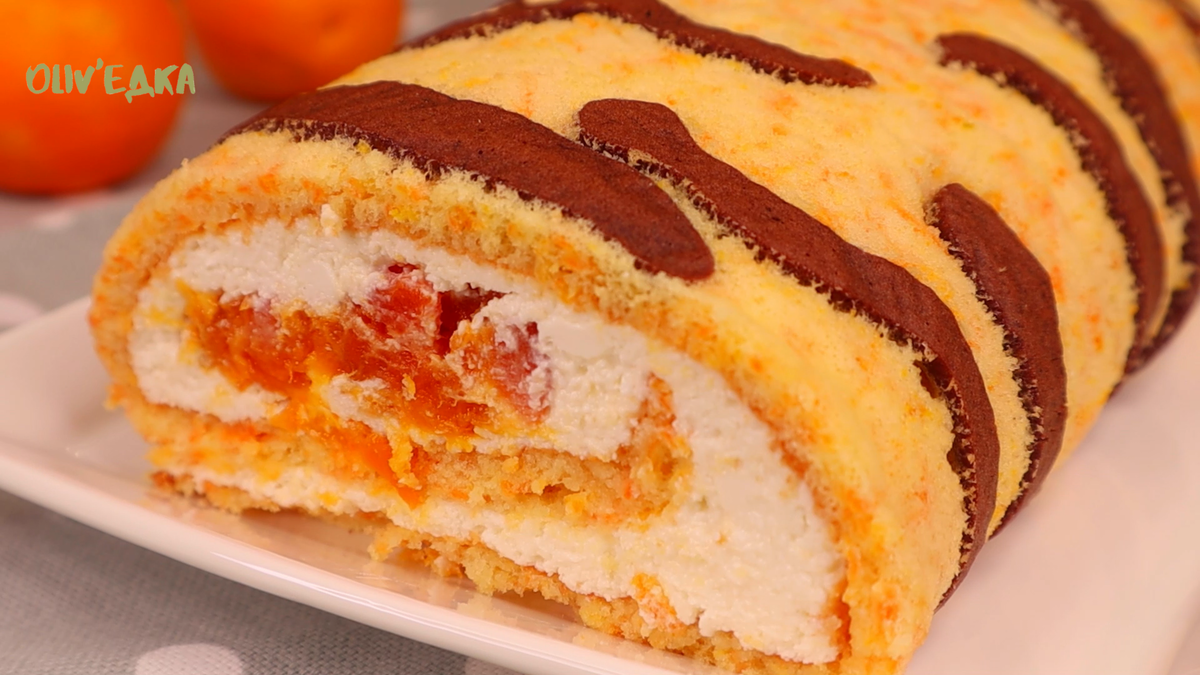 Рулет "Тигр" с нежным творожным кремом. Красивый рулет на Новогодний стол из простых продуктов
