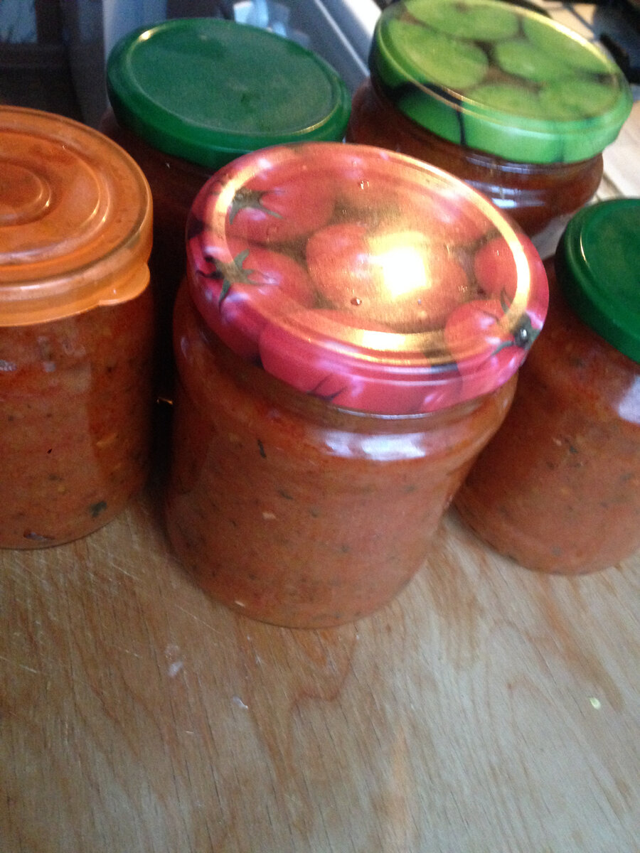 Результат моих усилий. Добрый вечер, мои дорогие читатели! Давненько я не писала статей.. Сегодня решила поделиться одним рецептом, который использую для приготовления такой вкуснятины уже года 4 точно.👨🍳 Главные составляющие - #кабачки, острый перец и томатная паста . Конечно, лучше брать пасту "Помидорка"! Я брала такие кабачки, которые даже не надо было чистить, настолько нежная кожица оказалась. Кабачки, которые совсем не требуют чистки. Собственно, сам процесс довольно прост : кабачки и перцы пропускаем через мясорубку , добавляем растительное масло, соль и сахар и все тщательно размешиваем.. Потом ставим на огонь и варим нужное время. Такие перчики я купила в этот раз. Достаточно острые, так что не обязательно каждый раз в конце варки добавлять чеснок и, тем более - черный молотый перец. Конечно, процесс варки надо контролировать и часто помешивать. Огонь должен быть небольшой. Добавляем томатную пасту и получаем шикарный цвет и вкус! Колоритный цвет заготовки. Можно доба
