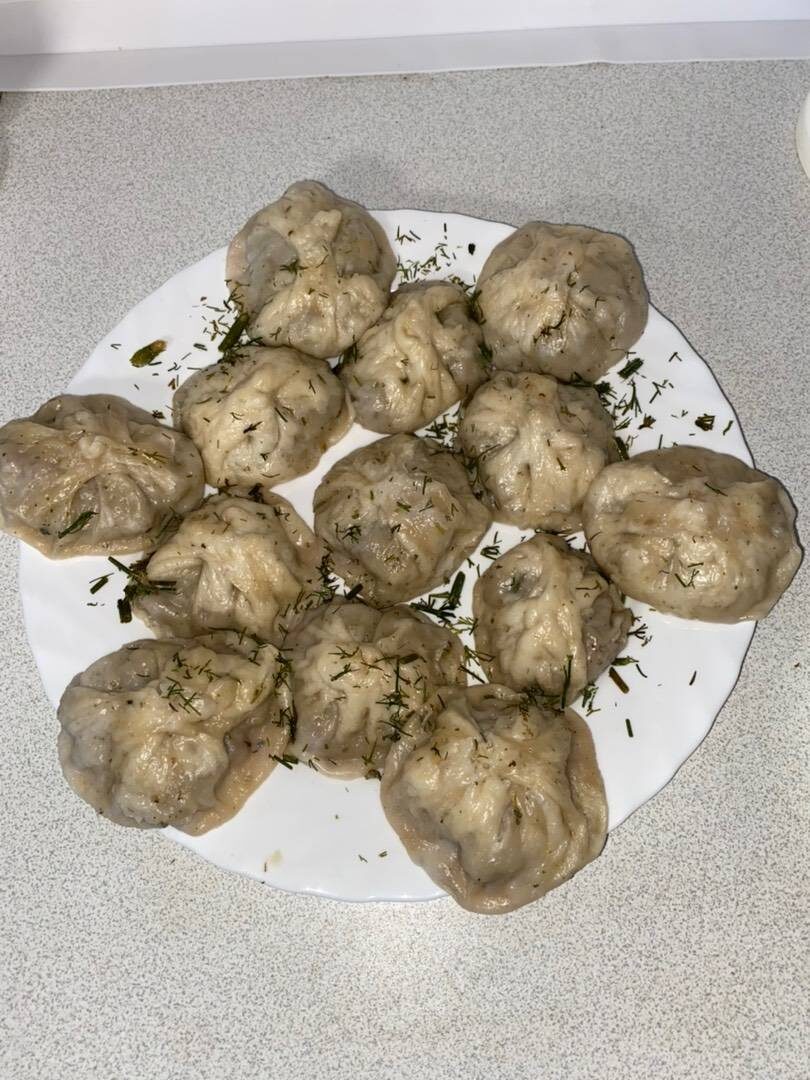 Ингредиенты: муки, Соль, дрожжей, воды тёплой, Для начинки, фарша любого, лука, картошки, Зелень, соль, перец , бульона любого Способ приготовления: Замесить тесто укрыть и оставить на полчаса. Приготовить фарш, добавить все ингредиенты. Раскатать тесто тонким слоем, вырезать кружочки, в кружочки фарш уложить и слепить можно как пельмень или как манты. Разложить в мантоварку и варить минут 40 на среднем огне.
