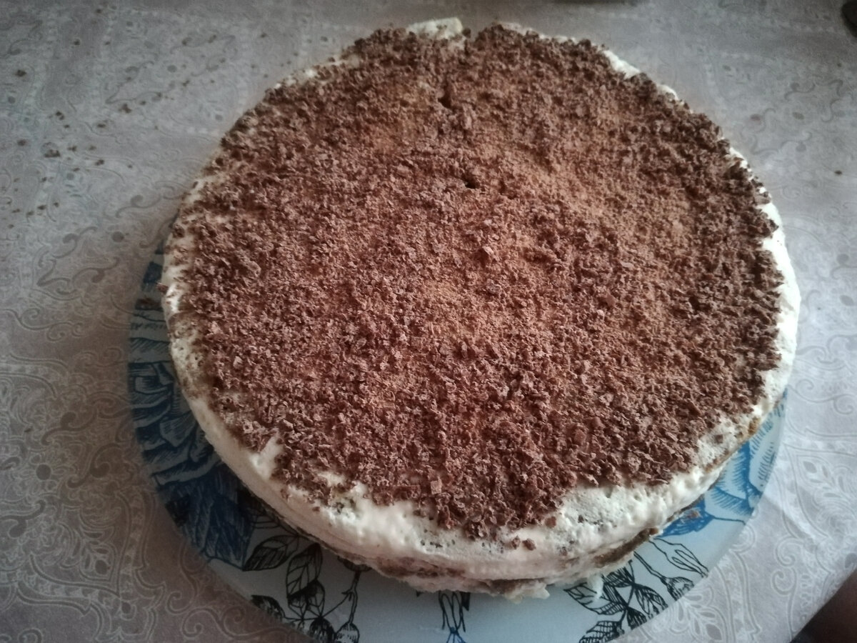Этот торт также нужно готовить заранее, чтобы коржи вафельные успели пропитаться.