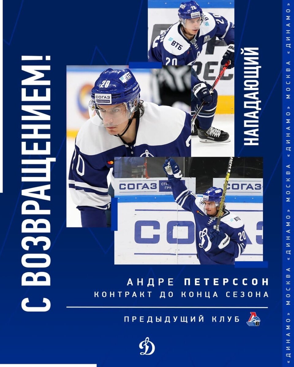 Нападающий Андре Петерссон вернулся в Динамо и подписал контракт до конца этого сезона. В составе москвичей Петерссон будет выступать под 20-м номером. Швед выступал за Московский клуб в сезоне 2019/20 и провел 53 игры, в которых набрал 45 (22+23) очков. В ноябре 2021 года шведский нападающий расторг контракт с ярославским Локомотивом. На данный момент игрок полностью оправился от травмы, которую получил 14 сентября в матче против Йокерита, и готов помочь Динамо в завершающей части регулярного чемпионата и играх плей-офф. «Андре Петерссон и московское Динамо пошли навстречу друг другу, чтобы хоккеист получил возможность вернуться на свой прежний уровень и принести максимальную пользу команде», — говорится на сайте Московского клуба. Завтра, скорее всего, Андре будет смотреть за игрой с трибун. А вот 30 декабря вполне возможно будет увидеть снова нападающего в форме бело-голубых. Однако, его мы можем увидеть максимум в 3 звене, первые два уже хорошо укомплектованы.