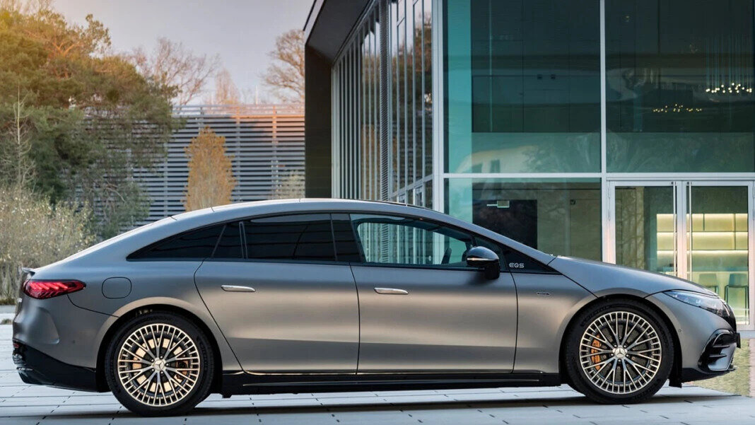Пока тюнеры балуются с гелендвагеном пытаясь из него выжать все соки, Mercedes без лишней шумихи начал официально продавать топовую версию Mercedes-AMG EQS 53. Электрокар был анонсирован ранее в этом году и позиционируется компанией как первый серийный электрический AMG автомобиль. Звучит многообещающе. И только сейчас немцы открыли все подробности о новинке и начали ее официально продавать. И так что же из себя представляет первый серийный AMG электромобиль? Давайте разбираться. Внешне новинка выделяется характерной черной заглушкой с вертикальными ламелями, этот элемент имитирует решетку радиатора характерную для всех топовых версий, а дополняет его массивный передний бампер с увеличенными воздуховодами. Корму в AMG подразделении украсили небольшим спойлером и новым более крупным бампером, а чтобы подчеркнуть особенность модели, были разработаны специальные 21 или 22 диски на выбор. Пока тюнеры балуются с гелендвагеном пытаясь из него выжать все соки, Mercedes без лишней шумихи