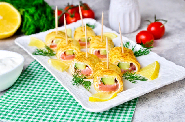 Оригинально, красиво, на каждый день и для праздника! Роллы из блинов с начинкой — рецепт простой, но эффектной закуски. Начинка похожа на любимое всеми японское блюдо, а заворачивают ее в традиционные русские блины. Сочетание получается не обычным, но очень вкусным!