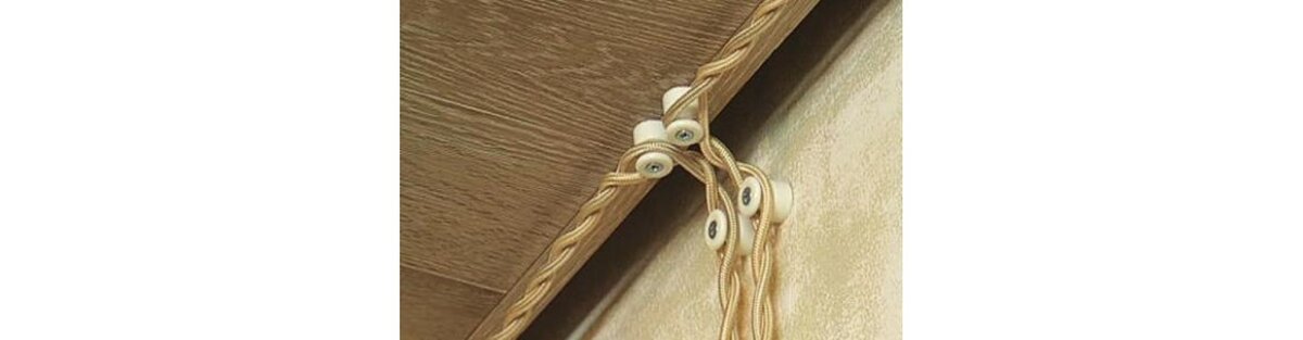Начнем, пожалуй, со скрученного способа. Его можно назвать основным методом прокладки открытой ретро проводки. Он подразумевает подвешивание проводов на специализированных роликах к потолочной поверхности. При этом соблюдается такая дистанция, чтобы к проводам было невозможно случайно притронуться рукой, но сами они не соприкасались с потолком. Данный вариант оптимален для жилых построек из дерева, так как они отличаются отсутствием огнестойкости, и огонь в них распространяется крайне быстро. Именно поэтому снова становится востребованным это, казалось бы, давно устаревшее изобретение, которое сегодня можно увидеть лишь в кино 1940-х и 1950-х.
