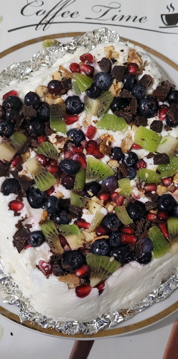 ✓ Ягоды, фрукты, орехи, горький шоколад и т.п. по вкусу и наличию (у меня голубика из морозилки, киви, зерна граната, грецкий орех, немного мелко накрошенного горького 75% шоколада). Желатин растворить в 100 мл воды (согласно инструкции на пакетике). Творог, йогурт и желатин хорошо перемешать (лучше блендером, но можно и венчиком/вилкой), добавить бо́льшую часть ягод, орехов, шоколада и перемешать ложкой/лопаточкой. Дно формы выстелить пищевой плёнкой, выложить оставшиеся ягоды, орехи и т.п, потом выложить творожно-йогуртовую смесь, разровнять (я прикрыла фольгой) и в холодильник. Через час десерт готов. Перевернуть на тарелку, снять пленку. В "праздничном" варианте можно потом украсить взбитыми сливками, тёртым шоколадом - да чем угодно. Приятного аппетита! Больше общения и рецептов - в группе "Жизнь с диабетом" в Facebook! Рецепт на странице в F