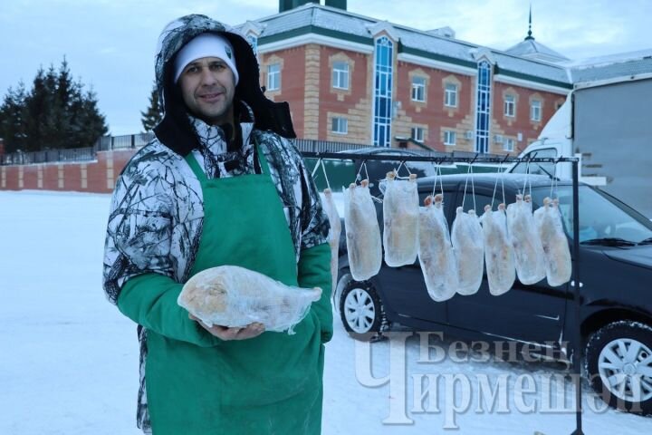 На сельскохозяйственной ярмарке, проходившей Черемшане, гусиные тушки «разлетались на ура». Да, настали времена, что даже в середине зимы немало продающих эту птицу. - С утра забрали несколько тушек, большой спрос и на потроха, - сказал Ришат Галиев. Со слов одного жителя района, балиш с гусиными лапками, крыльями, желудком - прекрасное праздничное угощение для гостей. Пенсионер Наиль Муртазин с женой приехали на ярмарку с утра, набрали продуктов к новогоднему столу, - Вот посмотрел и телят, - поделился он. - Есть у нас один теленок, которого будем забивать на мясо через несколько месяцев, потом нужен будет чуть моложе для откорма. Фанис Сафин из Амирова купил два мешка пшеницы по 20 рублей за килограмм. Дороговато, конечно, но в последнее время на ярмарках редко в продаже можно увидеть зерно. - Пшеница есть, а этот запас на весну, - сказали Сафины, содержащие на подворье большое количество домашней птицы. Сегодня на ярмарке продавали гранулированный жом по 1000 рублей за мешок, телят