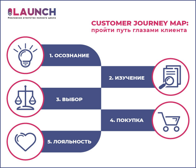 Клиенты — неотъемлемая составляющая любого бизнеса. Их привычки, предпочтения, пожелания и потребности непременно учитываются при создании продукта и разработке маркетинговой стратегии. От незнакомого с брендом человека до лояльного покупателя проходит долгий и непредсказуемый путь. Иногда он может быть тернистым — на разных этапах потенциальный клиент сталкивается с проблемами, служащими барьерами к совершению покупки. Порой владельцы компаний даже не догадываются, что теряют большое количество клиентов из-за незамеченных проблем и упущенных недоработок. Для того, чтобы отследить и проанализировать покупательский путь, существует Карта пути клиента (Customer Journey Map или же сокращенно: CJM). Данный инструмент позволяет увидеть разные стадии готовности людей совершать покупки — от первого контакта с брендом до максимальной лояльности к нему. Согласно системе CJM, клиенты проходят несколько стадий отношения к вашей компании: