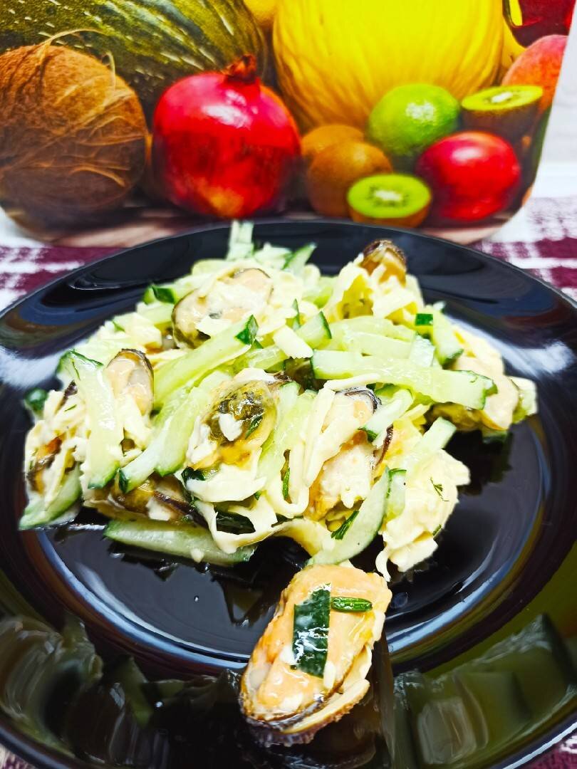 Салаты с мидиями считаются "ресторанными" и подаются лишь в исключительных случаях, так что для праздничного стола это идеальный вариант 🤗. @Marina_Kashcavceva большое спасибо за идею 💐 #новыйгод Ингредиенты: мидий в масле, небольш.огурец, сыра твёрдого, Соль , майонез или соус Тартар, Зелень укропа для подачи Способ приготовления: Приготовить нужные ингредиенты. Огурец нарезать соломкой, сыр натереть на крупной тёрке. Мидии выловить из масла, добавить в салатник. По желанию посолить, заправить майонезом или соусом. При подаче посыпать зеленью укропа. Приятного аппетита 😋!!! Если Вам понравился мой рецепт и Вы приготовили по нему-мне будет очень приятно, если оставите свой фотоотзыв 🤗🥰. Интересно посмотреть, что у Вас получилось ❤️💐🤩. Мой видео рецепт можно посмотреть ⬇️