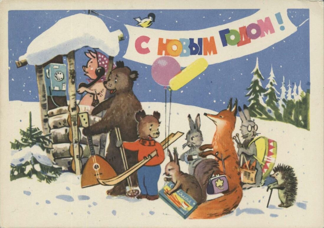 Мы уверены, что у многих из нас сохранились старые советские новогодние открытки – присланные дальними родственниками, подаренные одноклассниками и друзьями, или купленные на почте, но так и не отправленные. А так как сейчас ретро вновь актуально – мы решили рассказать вам об открытках и плакатах советской эпохи, которые хранятся в нашей библиотеке, в НЭБ. Исторические поздравительные карточки передают дух своего времени, «повествуют» о том, что было важно и дорого для людей из «другого поколения». Они сделаны с детской добротой, отличаются яркими рисунками, интересными и простыми сюжетами. И, конечно, заряжают на праздничное настроение! Привычные для нашего восприятия открытки стали появляться в 1950–1960-х годах. Тогда художники создали любимые всеми образы – Дед Мороз и Снегурочка, лесные животные, кремлевские куранты, пушистая красочная елка и счастливые дети. Часто над праздничными открытками работали художники-мультипликаторы, поэтому они получались такими яркими и запоминающимис