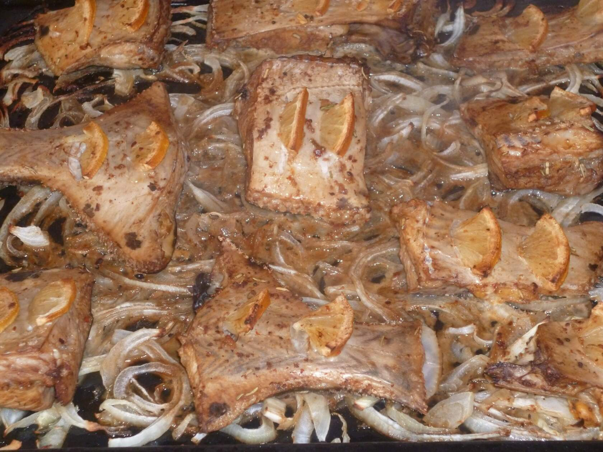 Ингредиенты:рыба камбала-1.5 кг; лук репчатый- 400 г; соль-по вкусу; специи- куркума, перец черный молотый- по1/2 чайной ложке; горчица - 1 столовая ложка; специи для рыбы-1 столовая ложка; розмарин-1 щепотка; соевый соус-1/2 стакана; лимон-1 шт; масло оливковое-2 столовые ложки ( можно просто растительное)