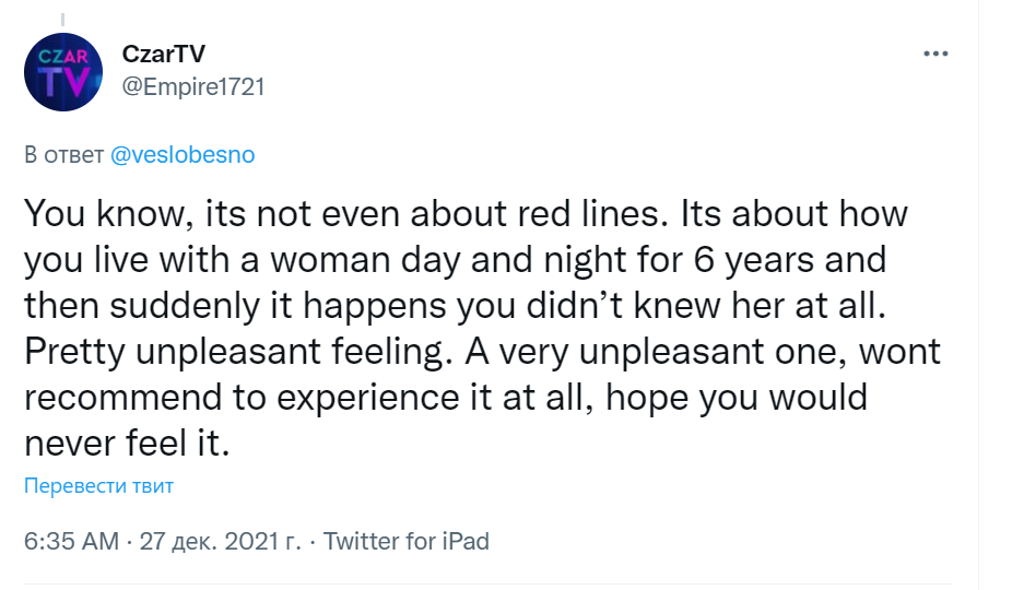 Нам говорят, что он изобрел новую модель медиа и сумел вывести нацповестку на новый уровень. Я посмотрела: в Ютьюбе он завел канал "Царское телевидение", 24 тыс. подписчиков. А знаете, в чем заключалась новизна бизнес-модели? Нет, думаю, даже самые его заядлые оплакиватели не знают, чем зарабатывал Егор Просвирнин на этом канале. Он вел стримы по классической трешевой схеме. Ну, есть стримеры, которые колотят друг друга в эфире, топчут и иногда даже убивают - все за донаты и по желанию подписчиков. Так вот, Егор Просвирнин делал то же самое. Мат-перемат, стыдобища, закрытый "Боярский чат" с платным членством, в котором люди платили, чтобы общаться с "гуру" и задавать ему в стримах вопросы. Он сидел в эфире по 3-4 часа, в основном с "единомышленниками" и женой. Я посмотрела его стрим с женой. Ну это ведь жуть. Обычный треш-стрим для ПТУ-шников. У них там какие-то гости иногда бывают, тоже без мата не говорят.
