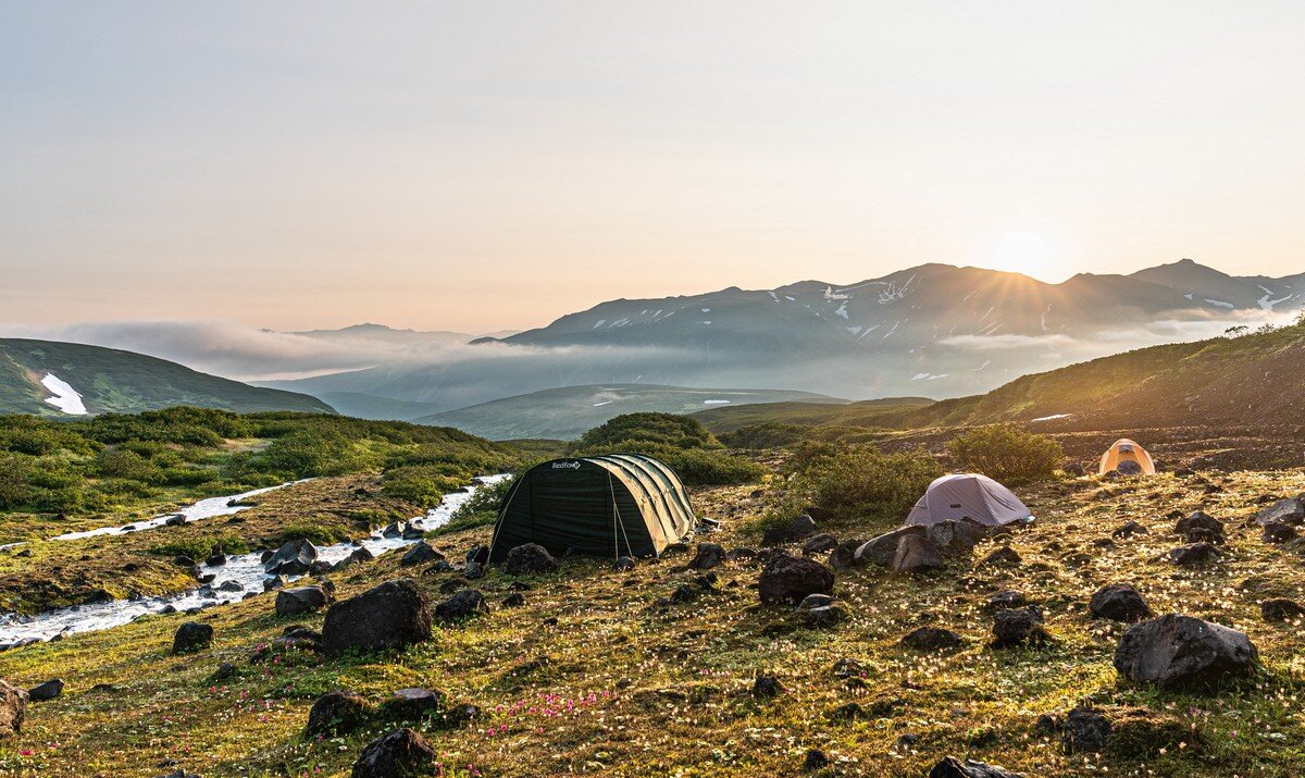 Однажды этим летом на Камчатке просыпаемся мы ранним погожим утром у подножия волшебно-восхитительного вулкана Кошелевский. Воздух звенит раннеутренней свежестью, небо небесит такой синевой, что хоть сразу в обморок падай, ручьи ручьят алюминиевыми струями (это не отсыл к Цою и «Алюминиевым огурцам», здесь оно действительно так и есть на самом деле). Короче, утро удалось! Что на Камчатке не так уж часто случается по разным погодным и другим причинам. Что делают настоящие путешественники в таком случае? Конечно же, они пытаются разбудить всё ещё спящих стабильно уверенным сном товарищей. А потом едят свой скорбный, но горячий завтрак — и на гору! Вернее, на вулкан! Когда идёшь туда наверх, то получается мордой в склон. Фоткать не особо получается. Но зато в обратную сторону — красотища! Где-то там далеко остался палаточный лагерь, да и не увидеть его уже за лабиринтами лавовых стенок. Мы же на вулкане. Но и в другую сторону посмотреть можно. Вершины — вот они, так близко! Чуть-чуть пото