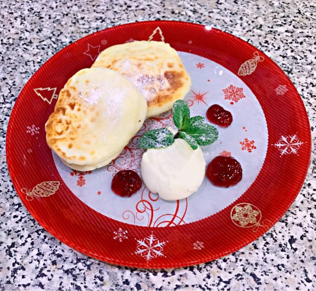 Ингредиенты: творог 9%, сахар, ванилин, соль, яйцо, мука, растительное масло для жарки, мука для панировки, Для подачи :, сметана, джем малиновый, Для украшения:, свежая мята Способ приготовления: В творог кладём сахар, соль, муку и яйца. Всё взбиваем блендером. Творог можно пропустить через сито. С творожной массы ложкой делаем небольшие шары. Затем обвалять в муке. И ножом формируем биточки. Сырники жарить на среднем огне с двух сторон. Горячие сырники подавать порционно со сметаной и джемом. Украсить мятой.