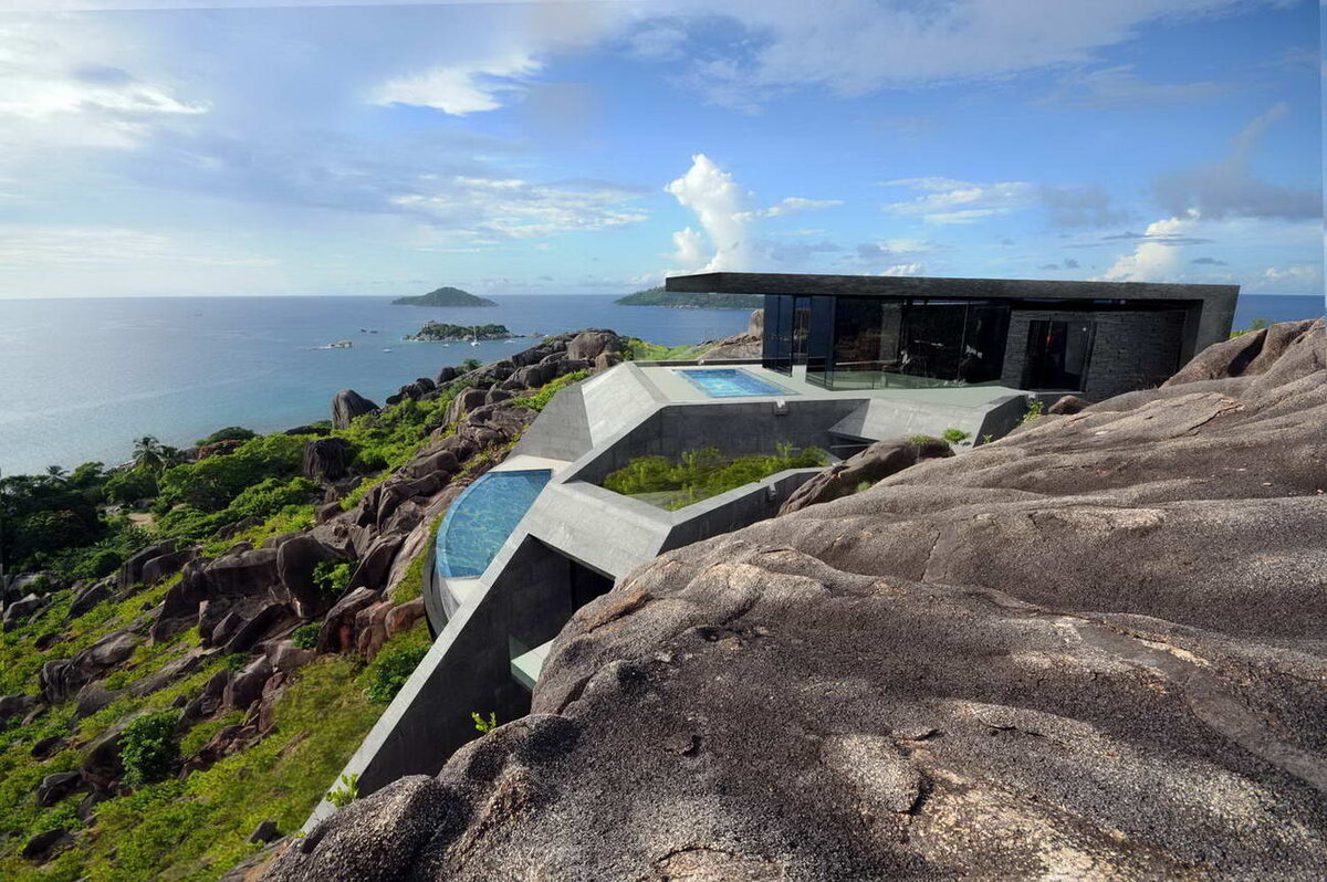 Архитекторы из дизайн-студии RHE разработали «типовой» проект виллы для эксклюзивного курорта, который планируется завершить в 2015 году на одном из Сейшельских островов. Дома в количестве 17 штук будут построены на вершине скальных выступов. В каждом здании три уровня с двумя бассейнами. Предусмотрены различные варианты планировок. Наверху расположен павильон с главной спальней и персональным бассейном. Основные материалы — монолитный железобетон и стекло. Название: Резиденция Один (Residence One)