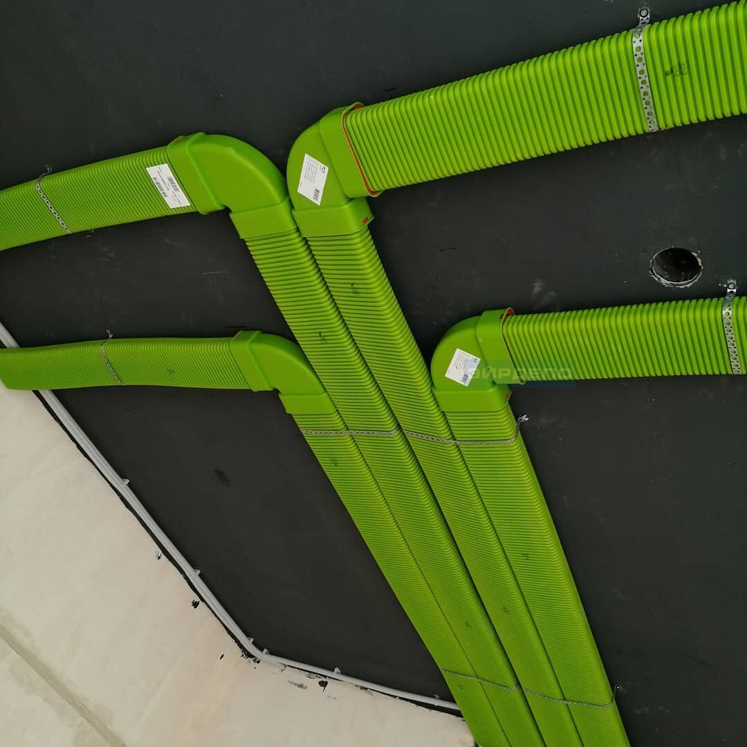 Инженерная компания Эйрдепо выполнила первый этап монтажа низкопрофильных зеленых воздуховодов Блиццард Люфттехник на объекте "квартира в ЖК Кутузовский лайф" Зеленые воздуховоды Blizzard L1 60х130 (ВхШ) расположены под потолком. 90 градусный угол (радиус) поворота воздуховода 60х130 в горизонтальной плоскости - 600 мм, когда нужно повернуть "быстрее" - используется 90 градусный горизонтальный угол, с радиусом 160 мм