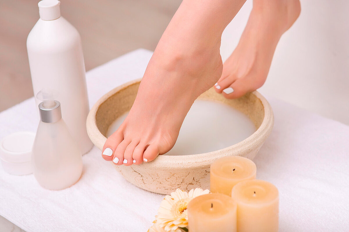 Распарь ступни в теплой воде с добавлением 1 ч. л соды, либо сделай процедуру после душа. Смешай кофе, соль и сахар. Обработай скрабом распаренную кожу ног, мягкими массирующими движениями.