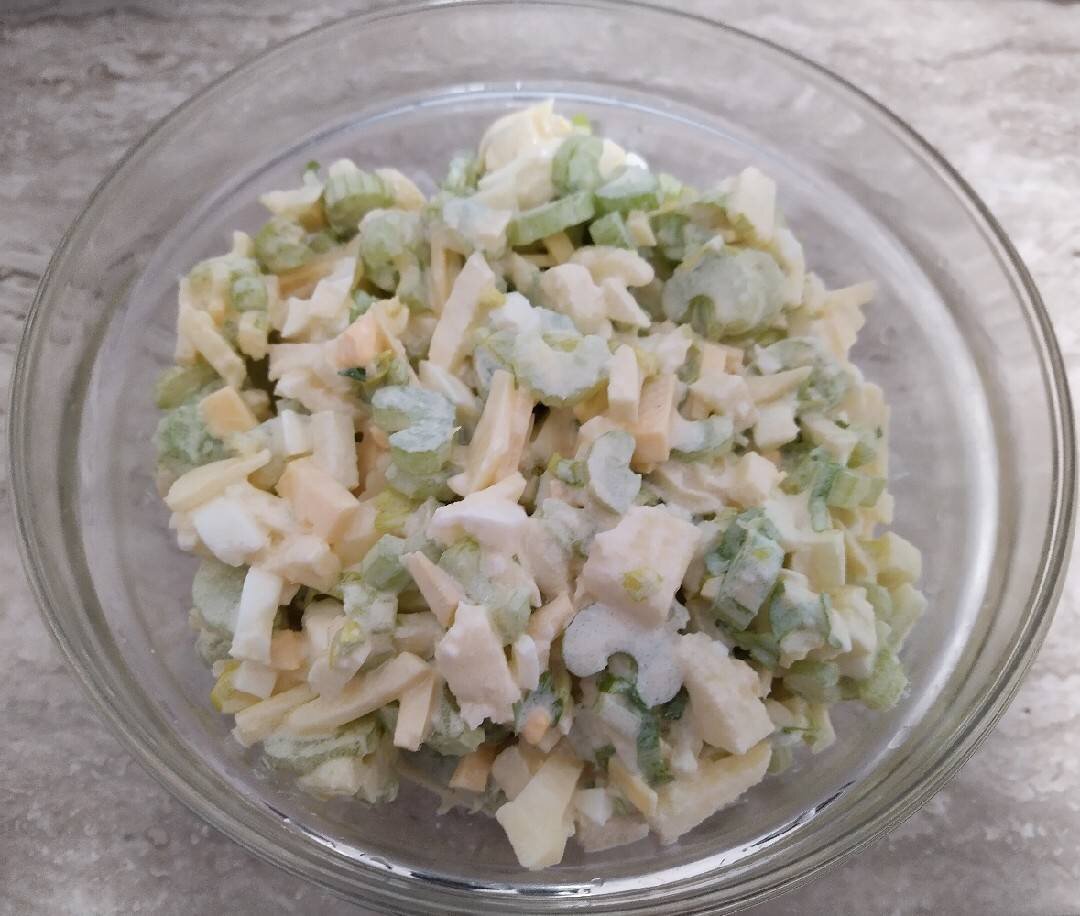 #святковеменю #салати Ингредиенты: Стебло селери , Яйця варені , Сир твердий , Яблука кисло-солодкі , Сметана , Йогурт густий , Гірчиця , Оливкова олія (або яка Вам до смаку), лимонного соку або яблучний оцет, Сіль Способ приготовления: Всі інгредієнти порізати кубиками Зробити соус: сметана+йогурт+гірчиця+олія+сіль+лимонний сік=збити виделкою до "майонезної" консистенції Перемішати салат і дати пару хвилин постояти, щоб всі інгредієнти з'єдналися. Смачного!