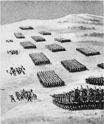 Эти три линии часто могли растянуться более чем на милю. В этом строю было несколько разрывов, но в основном он представляла собой один длинный непрерывный фронт. Промежутки между рядами позволяли тыловой линии в случае необходимости выдвигаться вперед во время боя.