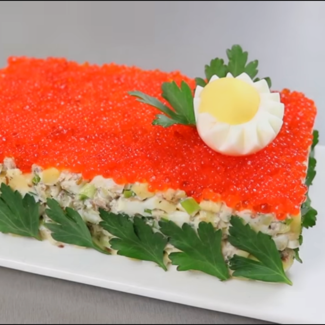 Всем привет))) Сегодня хочу представить вашему вниманию еще один красивый и простой салатик))) Собираю салат. Выкладываем все продукты в чашу в сайру, картофель,яйца, сыр и яйца.По вкусу солью и заправляю майонезом. Все перемешиваем и выкладываем салат прямоугольную формочку. Отправляю салат холодильник пропитываться на 2 часа. Затем снимаем форму и украшаем икрой. Снизу украшаем листиками петрушки по желанию. Еще можно украсить красиво разрезанными яичком. Вроде бы обычные продукты, но как ярко и красиво выглядит.)) Ингредиенты: Спасибо за внимание))) Если вам понравился мой рецепт ставьте лайк))) Желаю всем хорошего настроения! Всем пока-пока))))