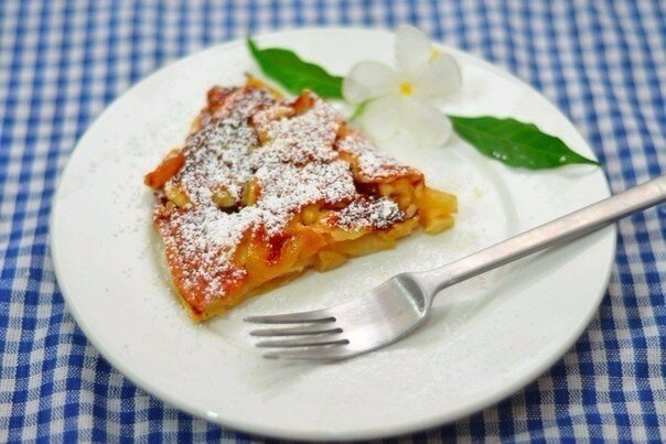 ИНГРЕДИЕНТЫ ПОРЦИИ 4 Пшеничная мука ½ стакана Сахар 1 столовая ложка Куриное яйцо 2 штуки Ванильный экстракт 1 чайная ложка Сливочное масло 2 столовые ложки Яблоко 4 штуки Сок лайма 1 чайная ложка Сахарная пудра по вкусу Молоко ⅓ стакана Жирные сливки ⅓ стакана 1.Подготовить ингредиенты. 2.Установите противень в верхней части духовки и разогрейте её до 260 С. Подготовьте яблоки: помойте, удалите кожуру и сердцевину. 3.Разрежьте яблоко пополам и нарежьте на тоненькие ломтики. 4.В миске смешайте муку, гранулированный белый сахар и соль. 5.В другой миске смешайте яйца half-and-half (50% молока и 50% жирных сливок) и ванильную эссенцию. Перемешайте до однородной массы. 6.Добавьте смешанные жидкие ингредиенты в муку. 7.Хорошо перемешайте венчиком примерно 20-30 секунд. Уберите в сторону. 8.На среднем огне разогрейте сковороду с антипригарным покрытием (примерно 25 см в диаметре). Растопите в ней сливочное масло. 9.Добавьте в сковороду яблоки, коричневый сахар и корицу. 10.Жарьте на средне