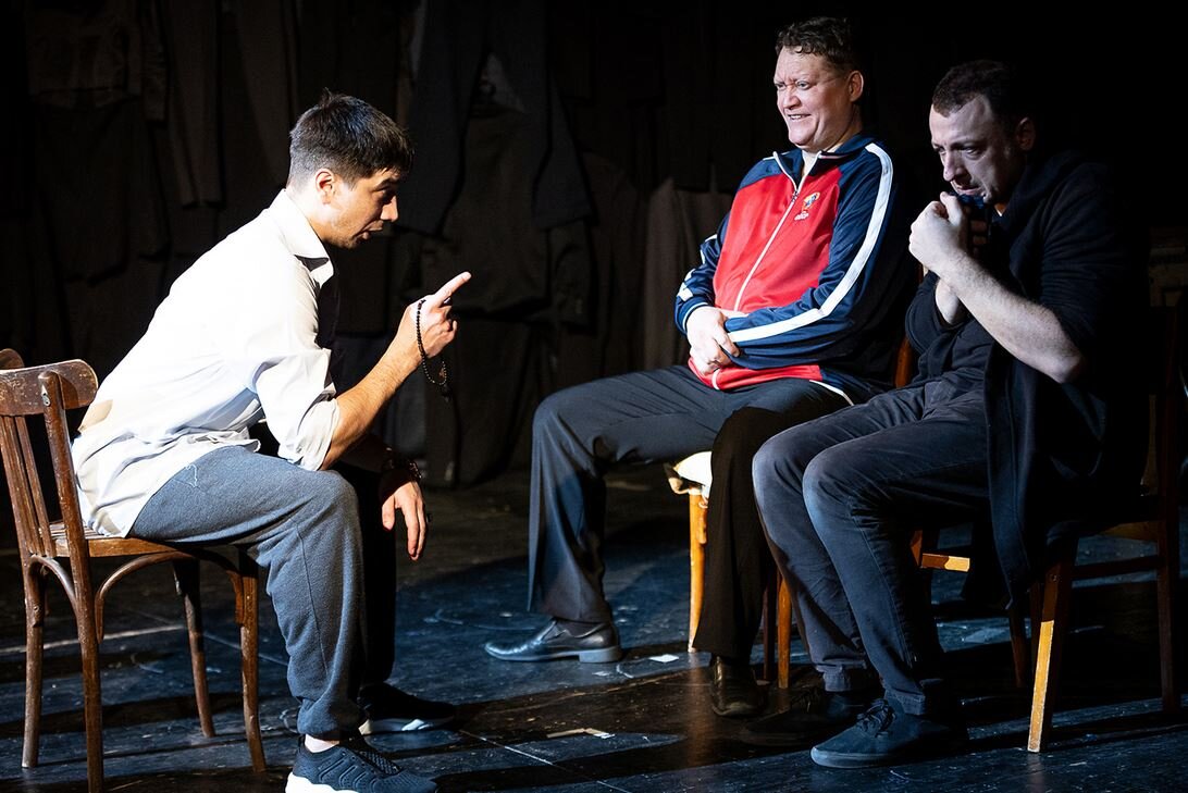 Собрались как-то трое мужиков в гараже поговорить за жизнь, подурачиться. Причём сначала они даже соблюдали дистанцию в полтора метра, но потом и думать про неё забыли. Конечно, напились… Перевернули столы, стали наряжаться в старые женины платья. Один, самый заводной, напялил на себя шину от ЗИЛа… Казалось бы, при чём тут Гоголь. Пока шёл этот спектакль, раза четыре или больше срабатывала пожарная тревога: «Иу-иу, просьба покинуть помещение!» А могли бы объявить по громкоговорителю, что в зале заложена бомба – и тоже было бы правдой. Потому что «Мёртвые души. Том второй» театра «Поиск» из Лесосибирска – это бомба, пушка, огонь, пожар. Во время представления Гоголь отдыхает (в летаргическом сне, пока создатели спектакля поджаривают его на вертеле до хрустящей корочки). … А ещё на этом спектакле продавали магнитик за 150 рублей, но мне не досталось. И тем, кто сидел в первом ряду, артисты раздавали конфеты (как потом выяснилось, это был подкуп). А одной девушке даже налили… Ну как