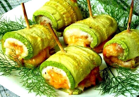 Как ни крути, а от кабачков нам ни как не уйти, они как пошли с дачи и такое чувство, что не закончатся ни когда, но новогодние праздники прекрасно помогут с ними справиться. Кабачок очень полезен для системы ЖКТ, по этому закуски из него будут не только вкусными, но также и отчасти полезными, так, что перейдем от слов к делу. Для приготовления нам понадобится: Куриное филе – 1 шт.; Кабачок – 2 шт.; Сыр – 70 гр.; Чеснок – 2 зубчика; Оливковое масло – 15 мл.; Соль, перец по вкусу. Для соуса: Майонез – 20 гр.; Паприка – 1/4 ч.л.; Куркума – 1/4 ч.л.; Соевый соус – 5 мл. Приятного аппетита!!!