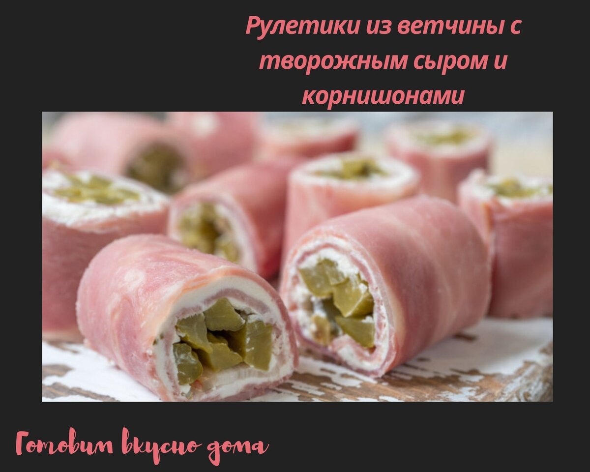 Рулетики из ветчины с творожным сыром и корнишонами