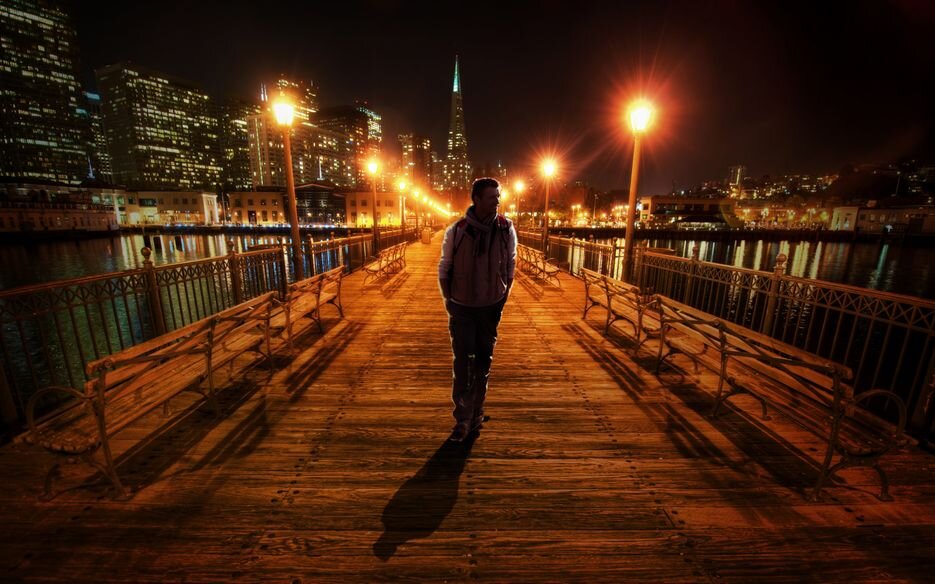 Вот и сейчас, заросший, бородатый, в свитере грубой вязки и такой же шапочке, с сумкой на плече он подходил к своему дому. Было тихо, кружился снег, превращая припаркованные авто в сугробы на колёсах. Окна квартир переливались огнями новогодних гирлянд, а кое-где проглядывали ёлочные ветки с висящими на них стеклянными шарами. Из приоткрытых форточек доносился бытовой гвалт предпраздничной готовки.