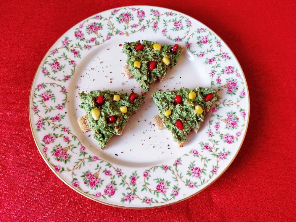 Очень вкусные и нарядные сэндвичи к Новогоднему столу. За рецепт благодарю Эльвиру Ломагу @cook_26444292 #новыйгод #закуски #бутерброды #сэндвичи Ингредиенты: яйца, шпината, репчатого лука, оливкового масла, соль, свежемолотый черный перец, Для украшения - зерна граната и консервированной кукурузы, черного хлеба Способ приготовления: Готовим все необходимое. Яйца предварительно отвариваем. Шпинат перебираем и моем. Хлеб нарезаем в виде ёлочек. Лук мелко нарезаем. Обжариваем в масле на сковородке до прозрачности. Добавляем на сковородку шпинат. Перемешиваем и обжариваем несколько минут до готовности. Солим и перчим по вкусу. Перекладываем в мисочку и даём немного остыть. Хлеб обжариваем на сухой сковороде по паре минут с каждой стороны. Яйца нарезаем кубиками. Добавляем к шпинату. Блендером пюрируем до однородной массы. Намазываем яичный паштет на подсушенный хлеб. Украшаем зернами граната и кукурузы. Приятного аппетита!