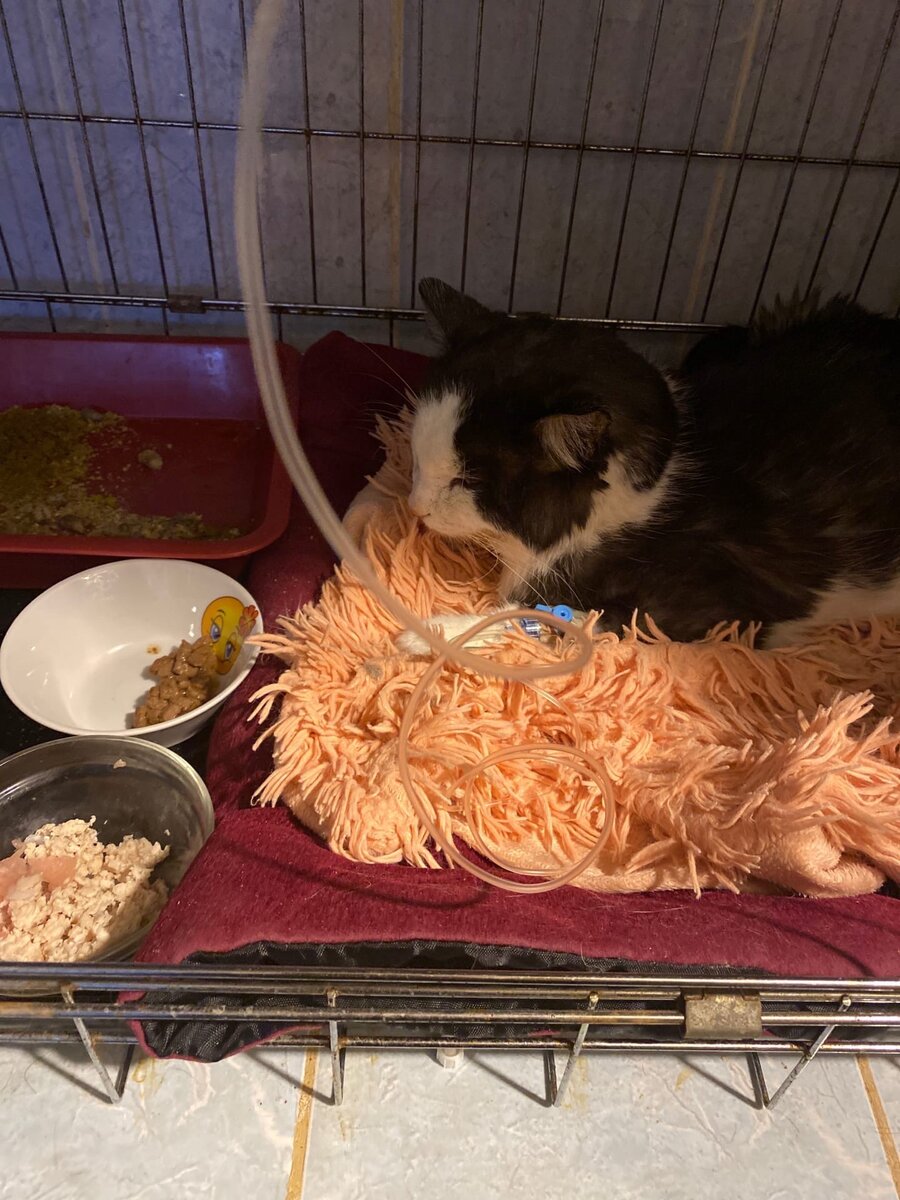 Но мы пока не сдаемся, мы лечим котика, ежедневно ставим капельницы. Каждый день капельница длится более 5 часов, куча лекарств и всяких уколов.