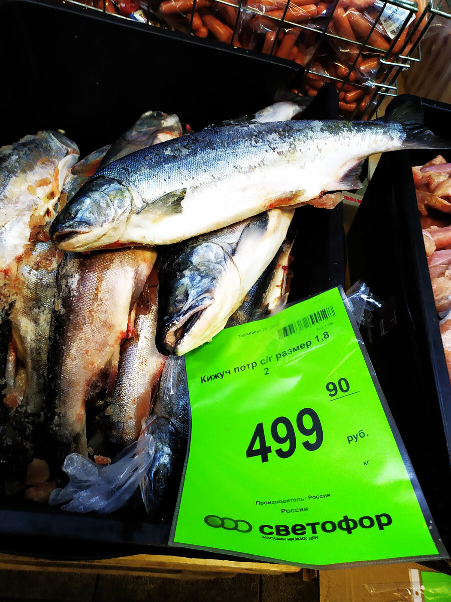 Зашла сегодня в "Светофор", чтобы купить продукты на полноценный праздничный стол. В продаже появилась деликатесная рыба кижуч из семейства лососевых по цене гораздо ниже, чем у конкурентов. В общем магазин забит товарами очень плотненько и выбор вполне сейчас неплохой. В этом обзоре хочу предложить вашему вниманию продукты, которые я заметила на полках "Светофора" города Крымск. Мороженая рыба кижуч из семейства лососевых до 2 кг каждая. Цена 500 рублей за 1 кг. Мороженая рыба кета, очень крупная до 4 кг каждая. Цена 296 рублей за 1 кг. Свиное мясное рагу кусочками, в упаковке по 2-2,5 кг. Цена 90 рублей за 1 кг. Последние остатки мороженой рыбы трески. Цена 300 рублей за 1 кг. В вакуумной упаковке маринованные крылышки индейки "Барбекю". Цена 209 рублей за 1 кг. Мандарины из Турции сегодня по акции. Цена 45 рублей за 1 кг. Хорошие крупные Турецкие лимоны. Цена 62 рубля за 1 кг. Майонез Mr.Ricco на перепелиных яйцах, в мягкой упаковке 850 мл. Цена 97 рублей. Пряники с глазурью и апел