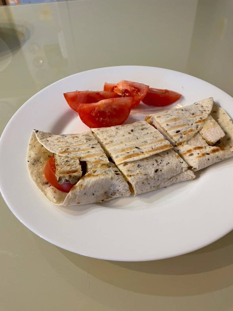 Ингредиенты: круглая тортилья, Филе индейки (жареное или запечённое), Сыр, маленький помидор Способ приготовления: На середину тортильи кладём кусочки филе индейки и помидора, посыпаем тертым сыром. Края сворачиваем, тортилью обжариваем на гриле или на сухой сковороде.