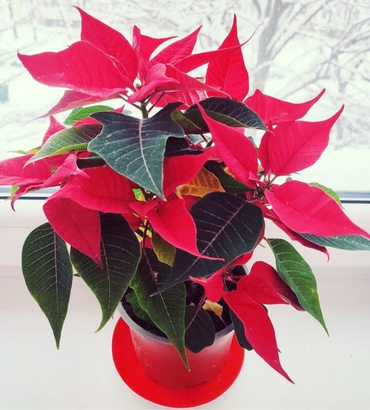 В предновогодний период Пуансеттия становится особенно востребованной. Это один из символов Нового года, который все чаще заменяет традиционную ель. А в европейских странах ее считают главным рождественским цветком. Считается, что она приносит в дом удачу и счастье. Правильный уход за Пуансеттией поможет сохранить ее и после праздников. Он не сложен, главное не допускать губительных ошибок. Соблюдайте температурный режим и берегите от сквозняков Пуансеттия – цветок южный. Холод и сквозняки для нее губительны. Во время активного роста температура должна быть 20-25⁰С, а во время покоя 15-20. Если она опустится ниже, растение выйдет из зоны комфорта и начнет сбрасывать листья. Тоже самое касается нахождения на сквозняке. Покупая Пуансеттию в магазине, перед выносом на улицу не забудьте укутать неженку. Если растение стоит зимой на подоконнике, то его листья не должны касаться холодных стекол. Обеспечьте достаточное освещение Удаленность от естественного источника света – не для Пу
