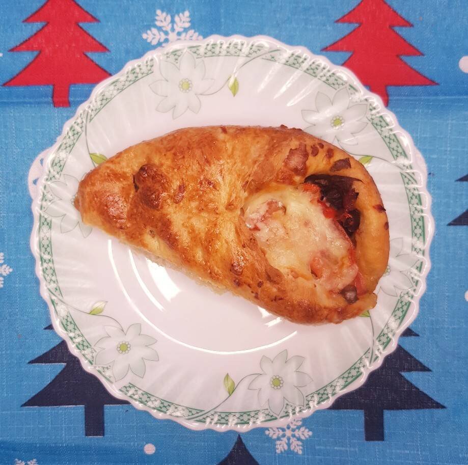Кулёчки имеют очень яркий и насыщенный вкус за счёт обильного количества ингредиентов. По вашему желанию вы можете заменить начинку на любую другую, например, на мясную. Ингредиенты: Теста слоёного дрожжевого, Опят обжаренных, Копчёной колбасы, Варёной колбасы, Лука репчатого, Сыра, Перца болгарского, Помидора, Острого кетчупа, Яйцо, Соли, Растительного масла Способ приготовления: Лук мелко нарезать. Помидор разрезать пополам, а потом на полукруги. Перец болгарский нарезать соломкой. Сыр натереть на крупной тёрке, колбасу варёную и копчёную нарезать соломкой или кубиком. Грибы мелко нарезать. Разогреть сковороду, выложить в неё лу, немного обжарить. Затем добавить грибы, хорошо перемешать и обжаривать вместе ещё минут 10. Немного остудить. Тесто раскатать, нарезать круги (я их вырезала с помощью чашки). У меня получилось 5 кругов. Каждый круг теста смазать кетчупом. Затем кладём начинку. По центру кругов выложить полоской сначала колбасу варёную, потом копчёную. На колбасу положить гри