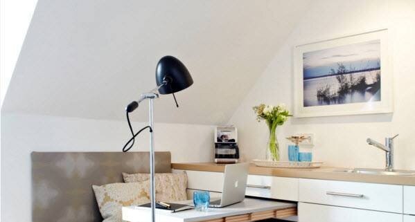 Как обустроить единственную комнату в квартире, которой необходимо выполнять функции спальни, гостиной, кухни, столовой и кабинета? Это не так сложно, как может показаться на первый взгляд. Именно так решили владельцы малогабаритных апартаментов и совместно с дизайнером создали совершенно легкий, свежий и невероятно привлекательный образ жилища, не поступившись при этом практичностью и комфортом созданной обстановки. Давайте рассмотрим подробнее этот удивительно светлый и привлекательный дизайн-проект. Сделав одни шаг в апартаменты, мы сразу оказываемся в небольшой прихожей, из которой можно попасть в ванную и единственную комнаты жилища, совмещающую в себе все необходимые функциональные сегменты. Все пространство квартиры оформлено с использованием белой отделки, перемежающейся поверхностями из светлой древесины. Именно древесные оттенки привнесли природную теплоту в достаточно прохладную, белоснежную обстановку. Ну а с помощью немногочисленного декора, оригинального текстиля и освети
