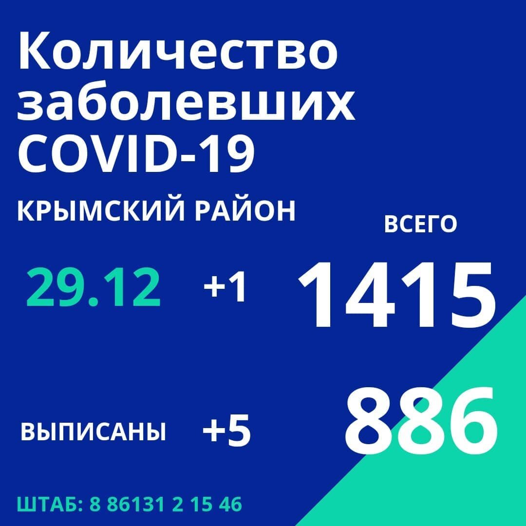29 декабря по информации оперативного штаба Краснодарского края в Крымском районе 1 новый случай заражения коронавирусной инфекцией.⠀