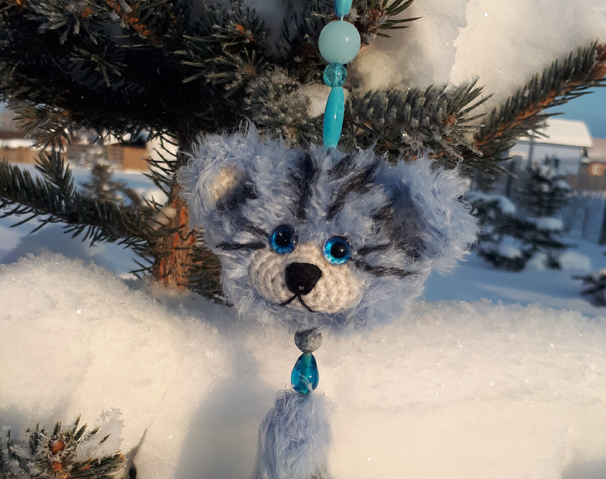 В прошлой статье я написала, как связать символ наступающего года - голубого тигра. Вот этот красавчик, мне он очень понравился и вязать совсем просто. Сегодня напишу, как связать маленьких тигрят, используя яйца от киндер-сюрпризов. Понадобится любая голубая пряжа и немного черной для полосок. Черной пряжей можно и не вывязывать полосы, а покрасить готовую игрушку перманентным маркером, так еще проще. Вяжем крючком небольшой кружок, равный диаметру яйца. Дальше вяжем прямо, без прибавлений, можно вывязывать черные полоски. Примеряем размер, вставляя яйцо в вязаную деталь. В яйцо можно положить бусины, бисер, крупу, в общем все, что приятно звенит😀, немного, чтобы игрушка в дальнейшем не была тяжелой. Вставляем яйцо в вязаную деталь. Завершаем вязание, убавляя петли. Я начесала заготовку щеткой. Вяжем небольшую трубочку-хвостик. Осталось связать только ушки, два кружка. Все детали после начесывания я подстригла, так как пряжа слишком пушистая. Пришиваем все детали по местам, приклеива