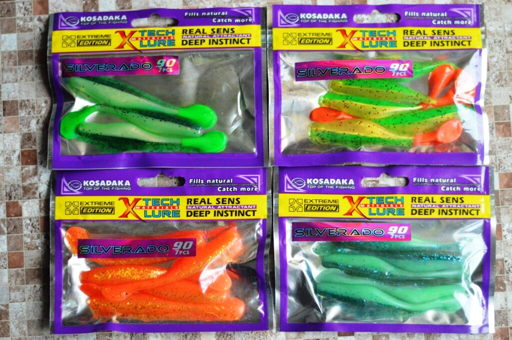 Их то, кстати, у Kosadaka Silverado вагон и маленькая тележка! Приятно взглянуть на все эти сочные цвета, а вот выбрать правильную сложнее. Глаза разбегаются, сердце стучит, дыхание учащается... Шутки шутками, но, если честно, то любой выбор будет правильным! Ловит не расцветка, а конкретный рыболов, поэтому я при выборе любой резины стараюсь всегда взять по паре ярких, красочных пачек и пару натуральных, естественных или темных расцветок.