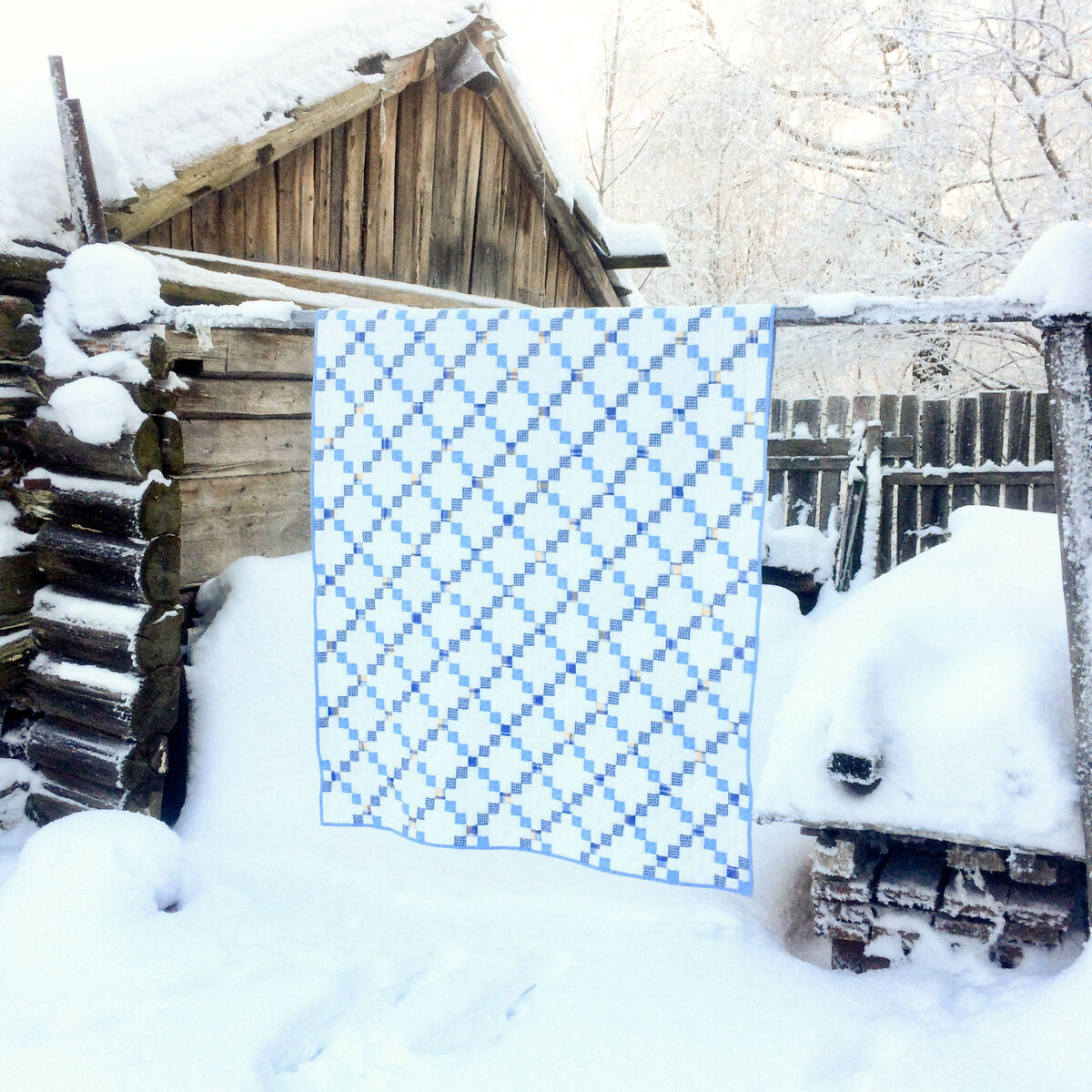 В этом году я сшил всего одно лоскутное одеяло. Но зато этот узор я давно хотел попробовать. Называется «Ирландская цепочка». Шьется быстро и легко, эффект интересный. Существует несколько вариаций этого дизайна. Классикой считаются цепочки из цветных однотонных квадратов на светлом фоне. Также хорошо смотрятся белые квадраты на ярком однотонном фоне, но можно пробовать разные сочетания. Главное, чтобы цвет цепочек был сильно контрастным к фону, иначе они теряются. Как сшить такое одеяло: 1. Нарезать полосы одинаковой ширины цветной и фоновой ткани. У меня 5 см, но можно крупнее, можно мельче. Длина полос любая. 2. Сшить полосы группами: 2 цветных по краю, белая в центре. И 2 белых по краю, цветная в центре. Разрезать на блоки такой же ширины, как исходные полосы. У меня 5 см. 3. Сшить блок из 9 квадратов. Накроить квадраты фоновой ткани, такого же размера, как получившийся блок. У меня 12,5 см. Пришить к каждому блоку фоновый квадрат. 4. Соединить получившиеся пары в блок из 4 квадрат