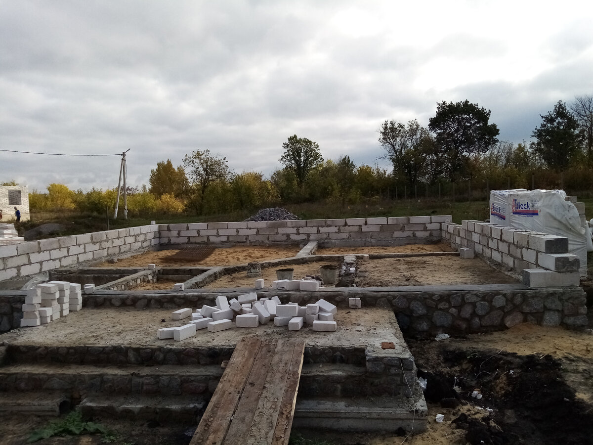 Строим дом второй этап. Разметил стены. Начал выкладывать. Перед этим обработал гидроизоляцией. Битумная мастика продается уже готовой. Использовал для кладки блок 300/200/600 мм. Cтена получилась 300мм. Далее выкладываем оконные проемы и дверные проемы. Использовал раствор для кладки 1к4 (1 цемента и 4 песка).Закладывал в кладку металлическую сетку для прочности. Где то через три ряда и перед последним рядом обязательно. Доходим до перемычек. Поставил на окна 50см уголок. На межкомнатные двери поставил опалубку заложил арматуру и залил бетоном. Стены готовы. Далее положил доску на переднюю стену и на заднюю предварительно помазать гидроизоляцией стену и доску. Можно и то и другое. Доску прикручиваем саморезами к стене. В следующей статье начинаем ставить крышу. Всем удачи в новом год #строительство # строить # строем дом # дом #стройка