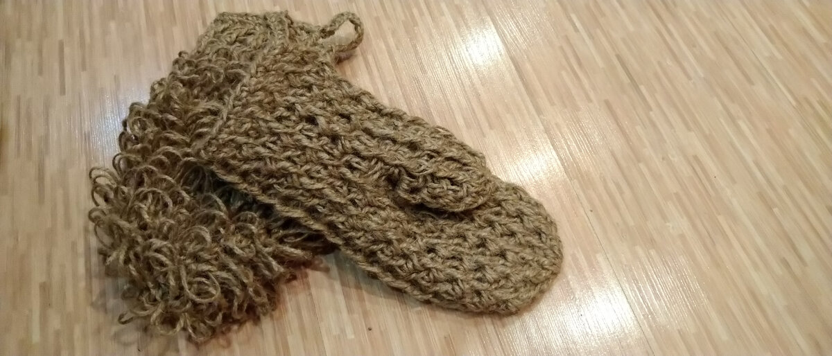 Решил я где-то полгода назад связать мочалку из джута. Само решение пришло не с бухты барахты. В интернете наткнулась на мочалку из джута в виде рукавички. И мне захотелось такую же. Прочитала про джут, о его пользе и где найти этот материал в нашем городе. Первый моток я купила в строительном магазине. И приступила к вязанию. Подобрала рельеф и связала ее где-то за час.