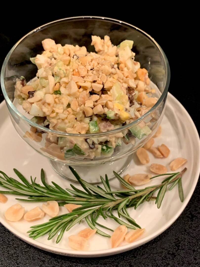 Подойдёт для праздничного стола #новыйгод #салат Ингредиенты: кур. филе, яйцо (варёное), огурец свежий, Майонез, чернослив, чеснок, арахис жареный соленый Способ приготовления: Огурец и яйцо нарезать мелким кубиком. Филе отварить и разобрать на волокна (или мелко нарезать). Чернослив намыть и измельчить. Чеснок пропустить через пресс. Всё соединить, поперчить, посолить по вкусу и заправить майонезом. Разложить порционно и посыпать рубленными орехами. Приятного аппетита!