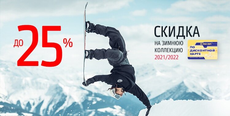 В период проведения акций, пожалуйста, уточните наличие товара в магазине и зарезервируйте его. При обращении в магазин, указывайте год коллекции, в связи с разной стоимостью товаров новой и старой коллекции. Скидка до 25% на зимнюю коллекцию 2021/2022! С 26 ноября 2021 г. в сети спортивных магазинов Триал-Спорт скидка до 25% по дисконтной карте на коллекцию зимнего сезона 2021/2022: горные и беговые лыжи, сноуборды, ледовые коньки и хоккейную экипировку, товары для туризма и скалолазания, обувь, а также 45% на кроссовки Asics и Adidas. Нет дисконтной карты? - Зарегистрируйтесь на сайте и получите карту! Катайтесь на здоровье!