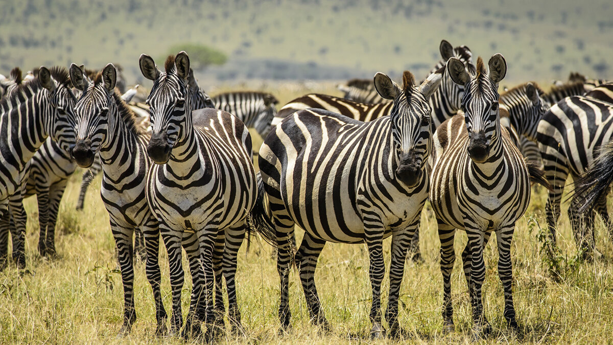 Зебры - полосатые родственники лошадей. Стада, объединяющие десяток забр, встречаются на равнинах Восточной и Южной Америки. Часто они путешествуют вместе со стадами антилоп гну или других травоядных животных. Так проще защититься от хищников. Зебры питаются в основном травой. Жеребята первую неделю кормятся только материнским молоком. Если жеребенок минует все опасности, которые подстерегают его, пока он мал, то через три или четыре года сможет обзавестись собственным потомством. Интересные факты: 1. Они способны развивать скорость 50-55 километров в час. 2. Средняя длительность жизни этих животных составляет 20-25 лет, а в неволе она увеличивается на 10-15 лет. 3. Молоко этих млекопитающих имеет розовый оттенок. 4. Детёныши умеют ходить уже через 30-40 минут после появления на свет. 5. Масса тела взрослой особи составляет от 160 до 390 килограммов. 6. Они не ведут одиночный образ жизни, они предпочитают собираться в небольшие группы или в стада, состоящие из нескольких семей. 7. Чело