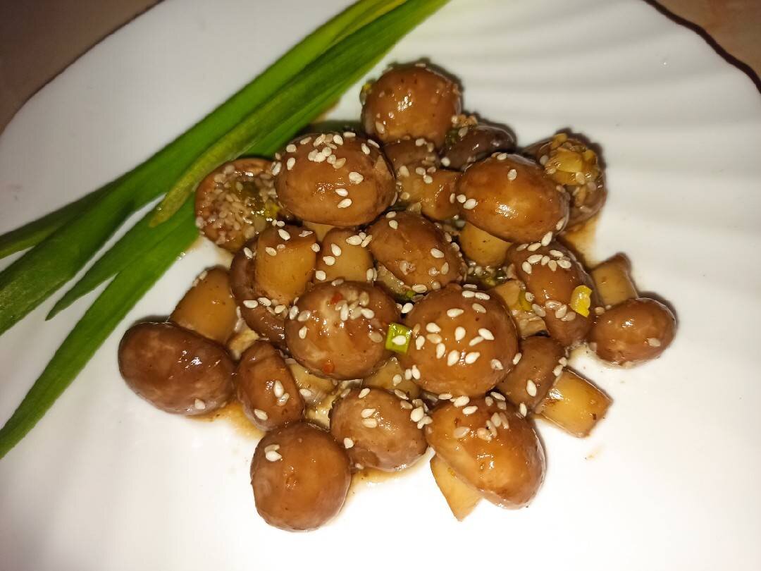 #святковеменю #закуска Быстрый, вкусный, ароматный рецепт маринованных грибочков. #грибы #маринованныегрибы Ингредиенты: грибы, растительное масло, уксус, кунжут, соль, сахар, соевый соус, кориандр молотый, лавровый лист, чеснок, зелени (у меня лук) Способ приготовления: Грибы лучше брать не большие. Если крупные, лучше их разрезать. Промыть хорошо. Выложить в кастрюлю, залить холодной водой, довести до кипения и варить 10-15мин. Откинуть на дуршлаг. Кунжут обжарить. В ёмкость где будете мариновать грибы, добавить масло, соевый соус, сахар, соль, уксус, приправы и зелень. Добавить грибы, кунжут, зелень, хорошо перемешать. Отправить в холодильник на 8-10часов. Желательно за это время, несколько раз перемешать. Получаются очень вкусные!!! ПРИЯТНОГО АППЕТИТА ❤️