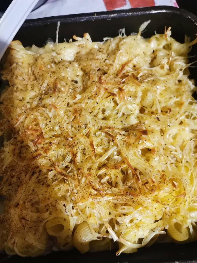 Ингредиенты: Фарш , Макароны , Лук , Яйцо , Молоко , Сыр , Соль, специи, перец Способ приготовления: Поджарить фарш до полуготовности. Добавить в него соль, специи. Очистить лук, порезать на кольца и пожарить до золотистой корочки. Затем добавить к фаршу. Отварить макароны, снять их за 5 минут до полной готовности. Слить воду, промыть холодной водой, поставить стекать их. Фарш в месте с луком выложить в форму. Вторым слоем выложить готовые макароны. Яйца и молоко взбить, добавить соль, перец. Залить в форму. Последний слой - сыр. Необходимо натереть его на тёрке. Разогреть духовку, поставить форму в нее на 15 минут. Достаем наше блюда из духовки. Наша запеканка готова !!! Приятного аппетита!